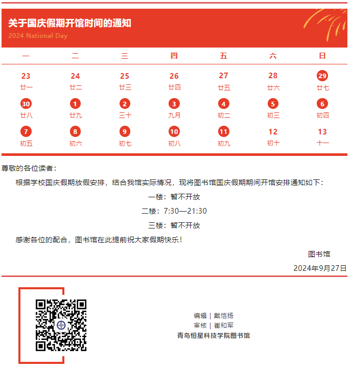 通知 | 关于国庆假期开馆时间