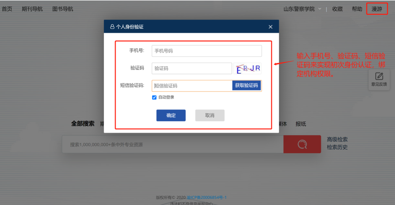 个人漫游账号注册完成后,可在任意的电脑终端获取中外文文献。通过手机号和验证码登录。对于校外办公、防控隔离、使用公共电脑的用户非常方便。