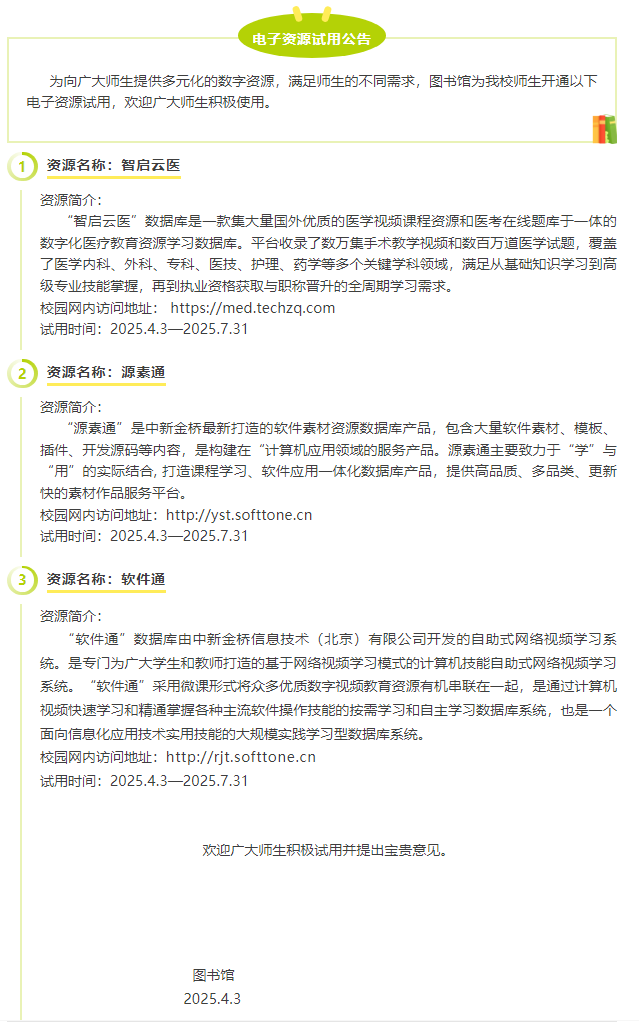 电子资源试用公告